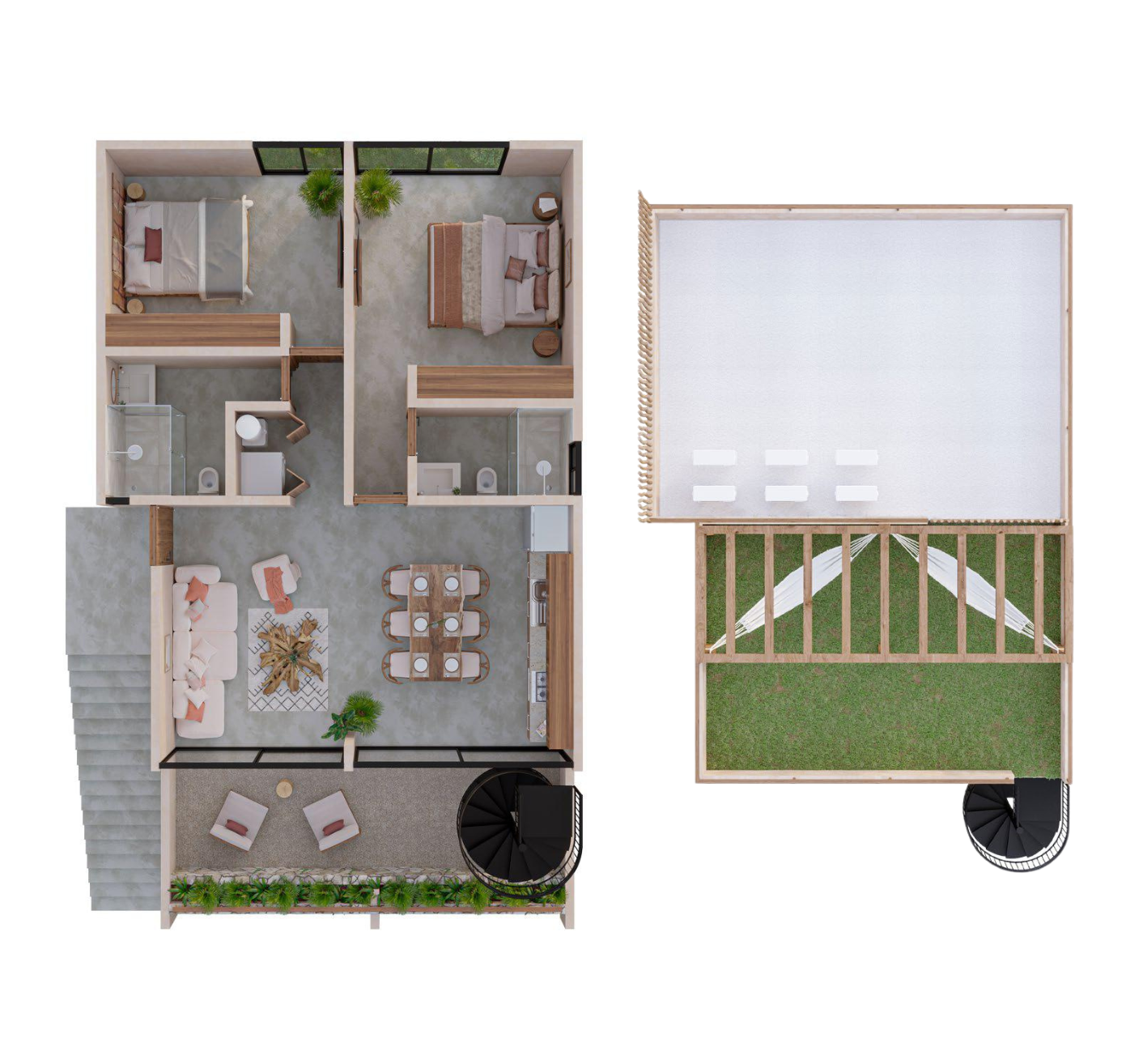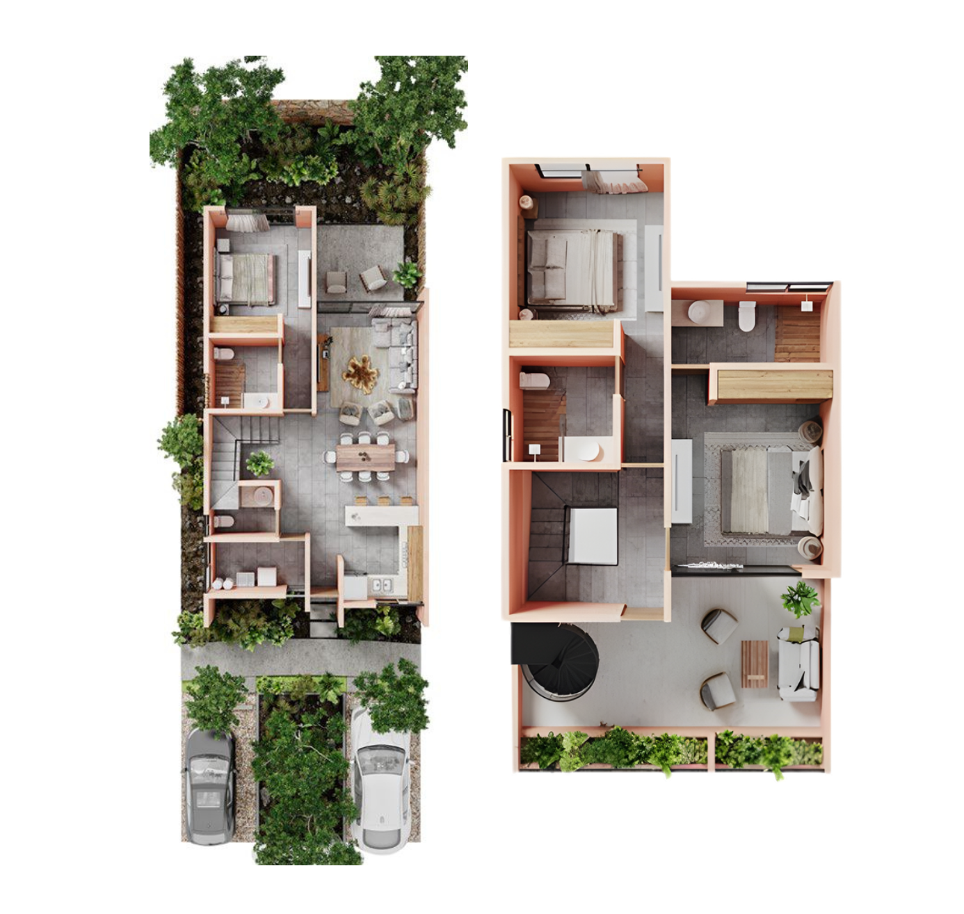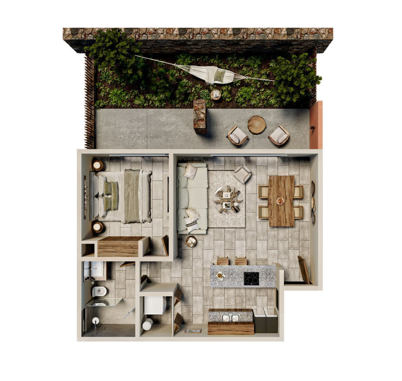 A community designed with organic architecture, integrated green spaces, and timeless materials that reflect Tulum’s natural essence.